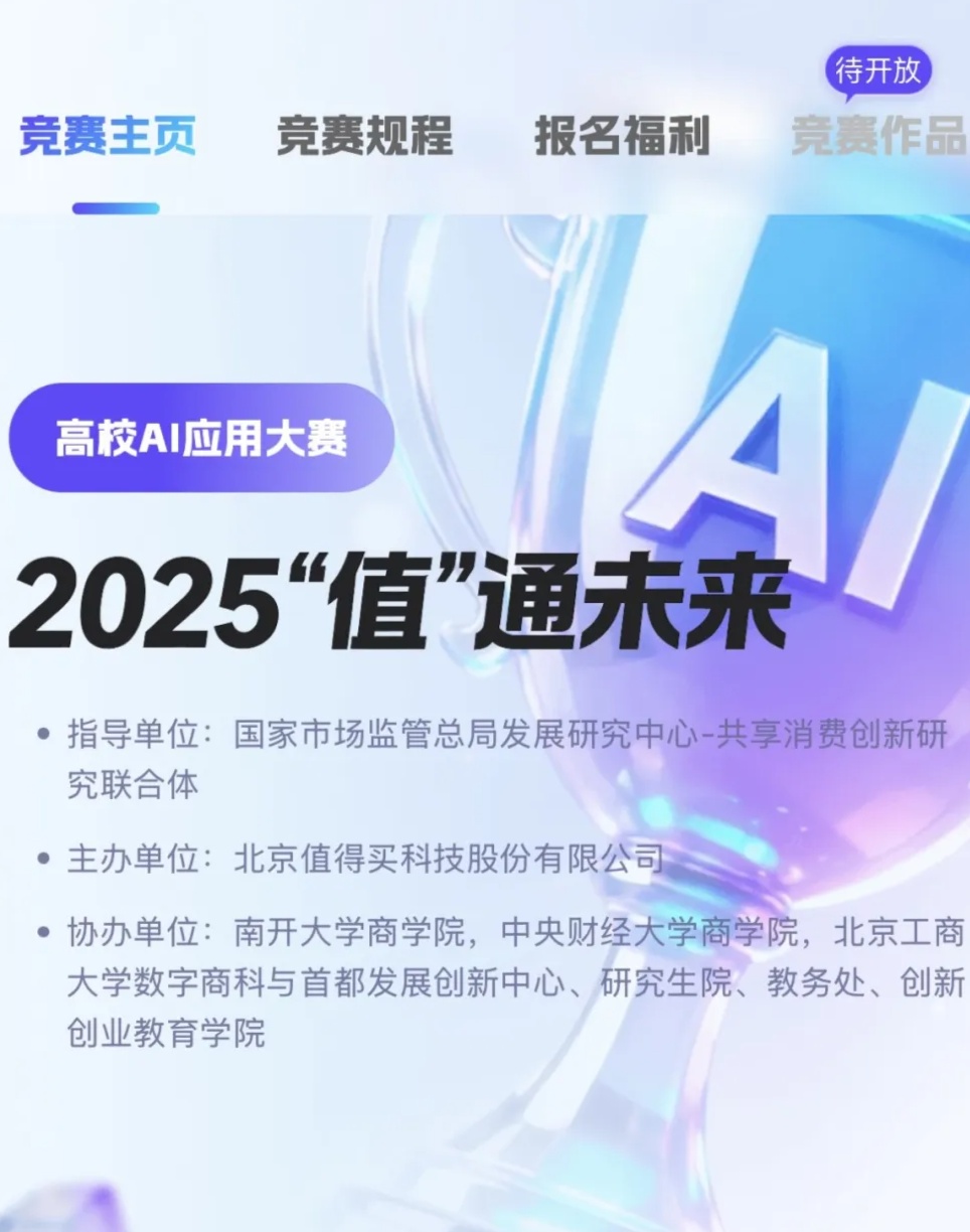 今年10月,值得买科技联合国家市场监督管理总局发展研究中心成立了“共享消费创新研究联合体”,本次大赛正是联合体成立后的首次联合行动,开启在AI应用、消费创新、监管协同等方向的实质推动。